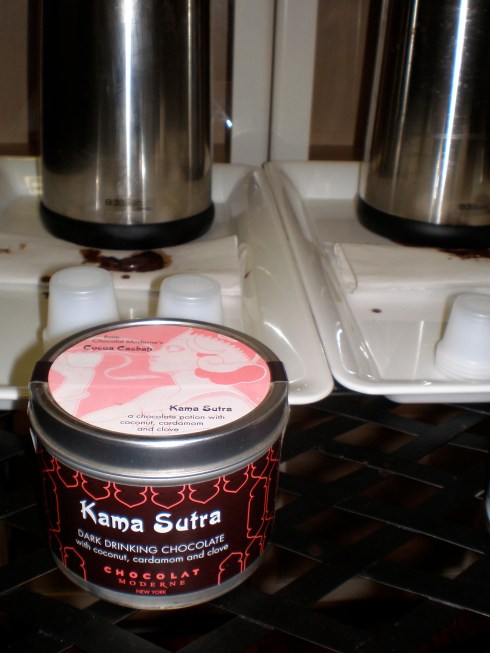 I got to sample the many delectable chocolates Chocolat Moderne has to offer. One of my favorites was the Cocoa Casbah Hot Chocolate ~ Kama Sutra, an exotic blend of cardamom, clove, and coconut. It’s chai tea making love to hot chocolate.